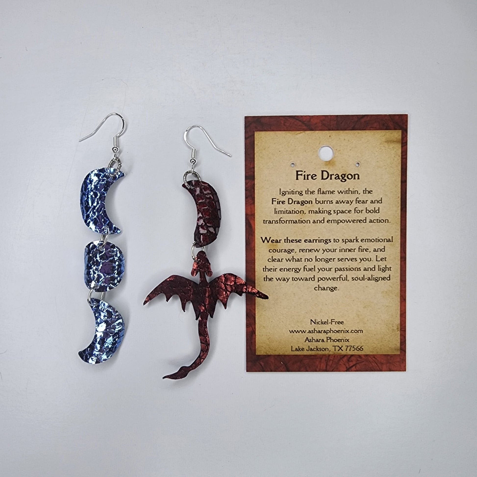The Fire and Ice Triple Moon and Dragon Earrings embody the sacred dance between opposites, passion and peace, power and grace, transformation and stillness. The Triple Moon mirrors your divine rhythm of creation and renewal, while the Dragon unites the elements of flame and frost, teaching balance through contrast.