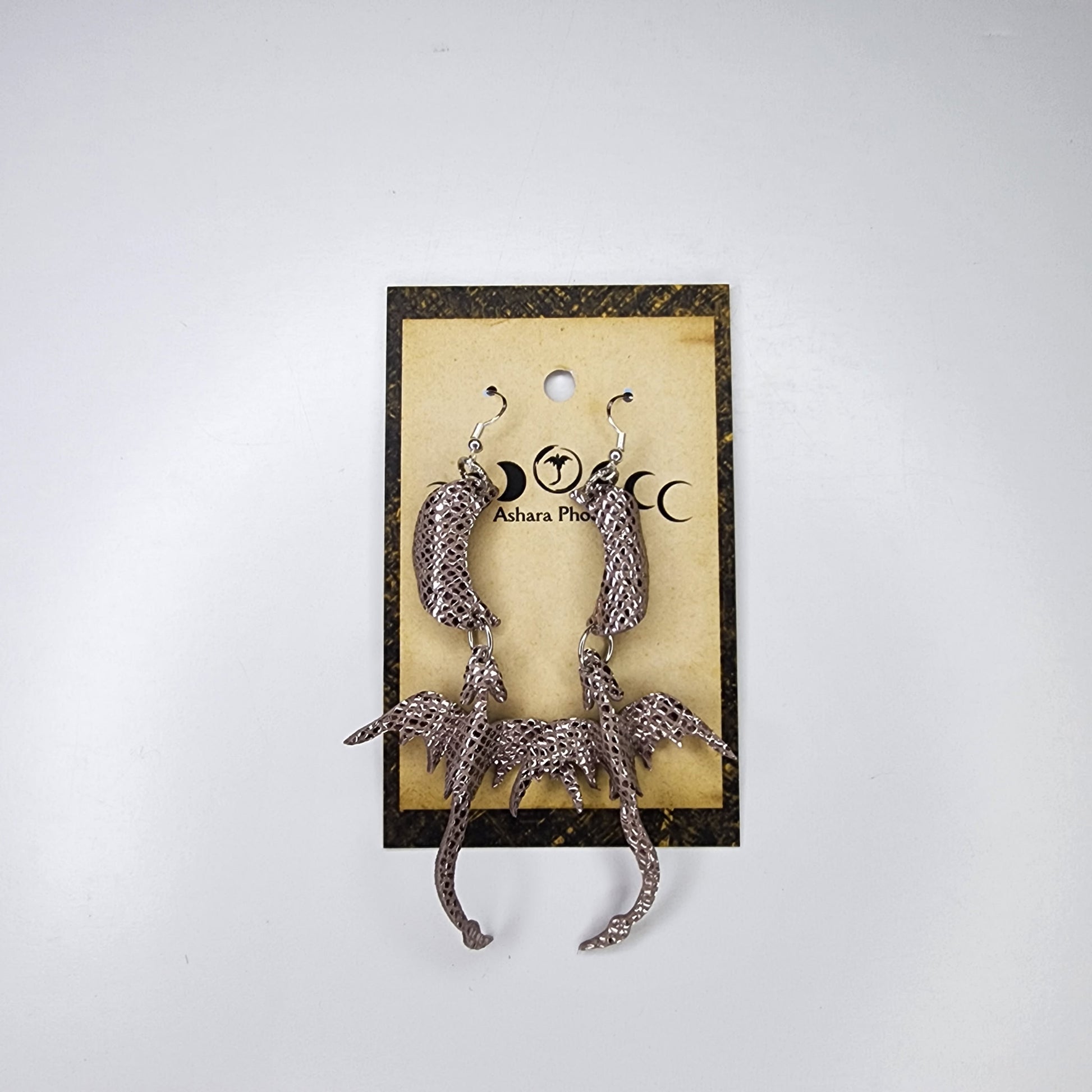 Forged in starlight and ancient magic, the Magic Mythril Dragon and Moon Earrings radiate clarity, intuition, and divine protection. The Dragon of Mythril is a guardian of higher wisdom and inner truth, while the Moon reflects the gentle illumination of your own soul’s light.