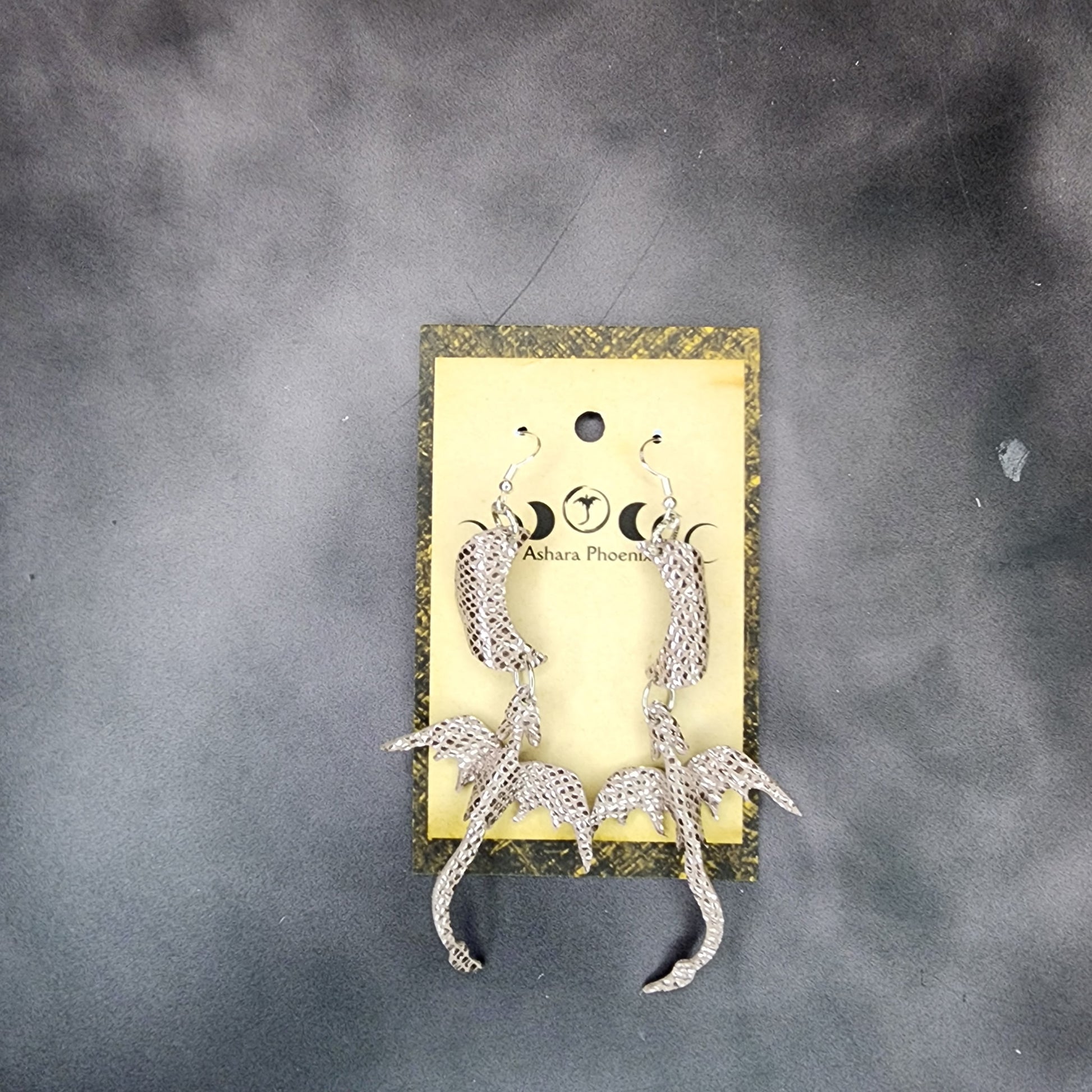 Earrings are 3-3.5 inches long from the top of the hook to the bottom of the tail. Each is 1 gram in weight, making them extremely light. 1.5 inches from wingtip to wingtip.