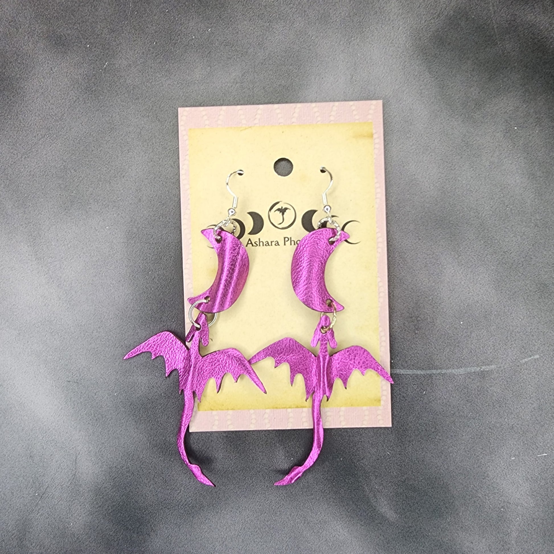 Radiant Magenta Dragon and Moon Earrings