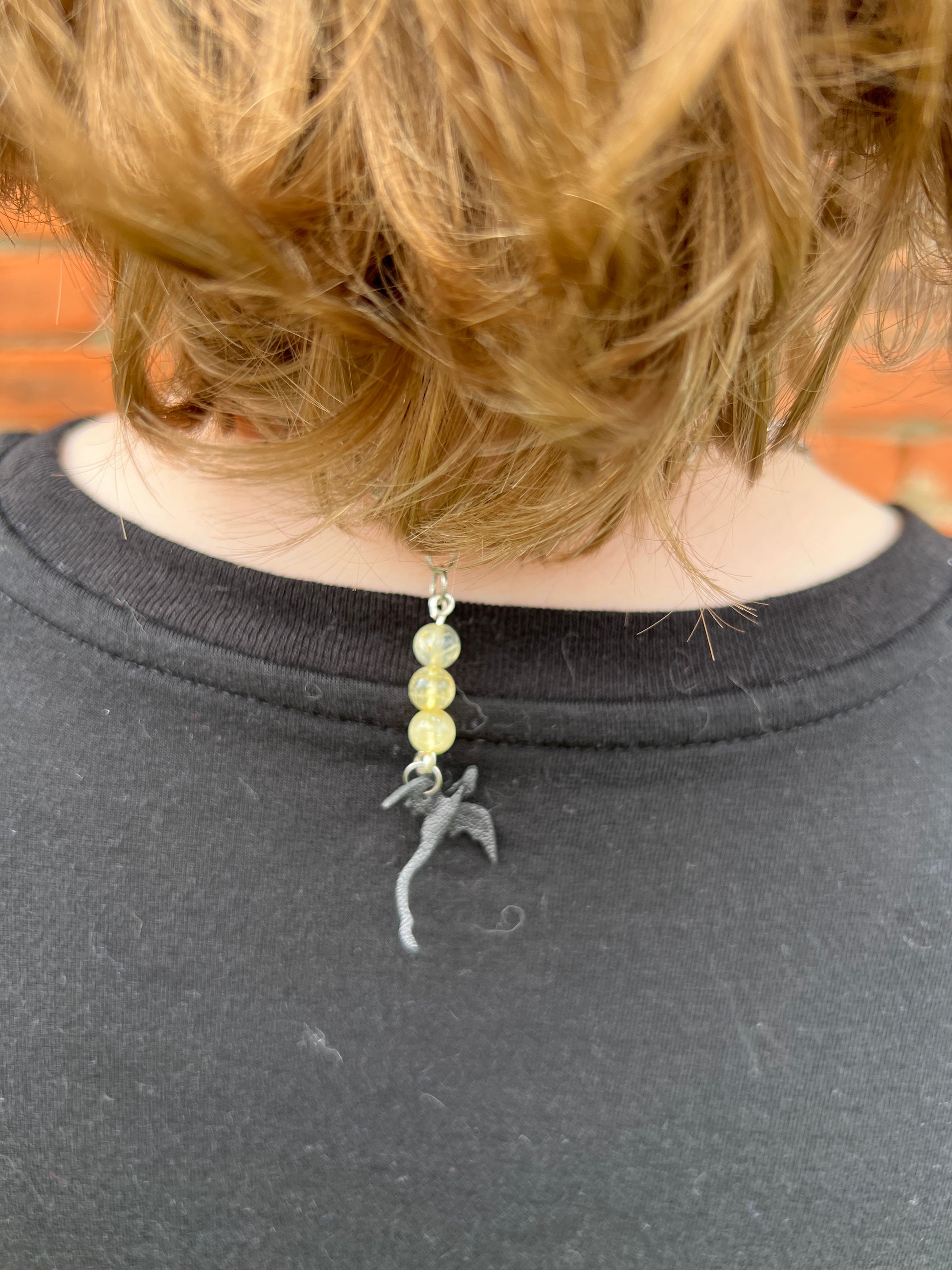 - Small black dragon charm at clasp