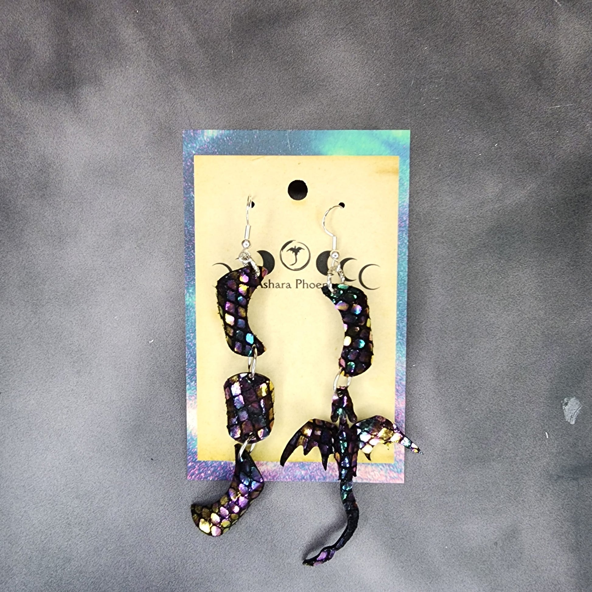 Earrings are 3-3.5 inches long from the top of the hook to the bottom of the tail. Each is 1 gram in weight, making them extremely light. 1.5 inches from wingtip to wingtip.