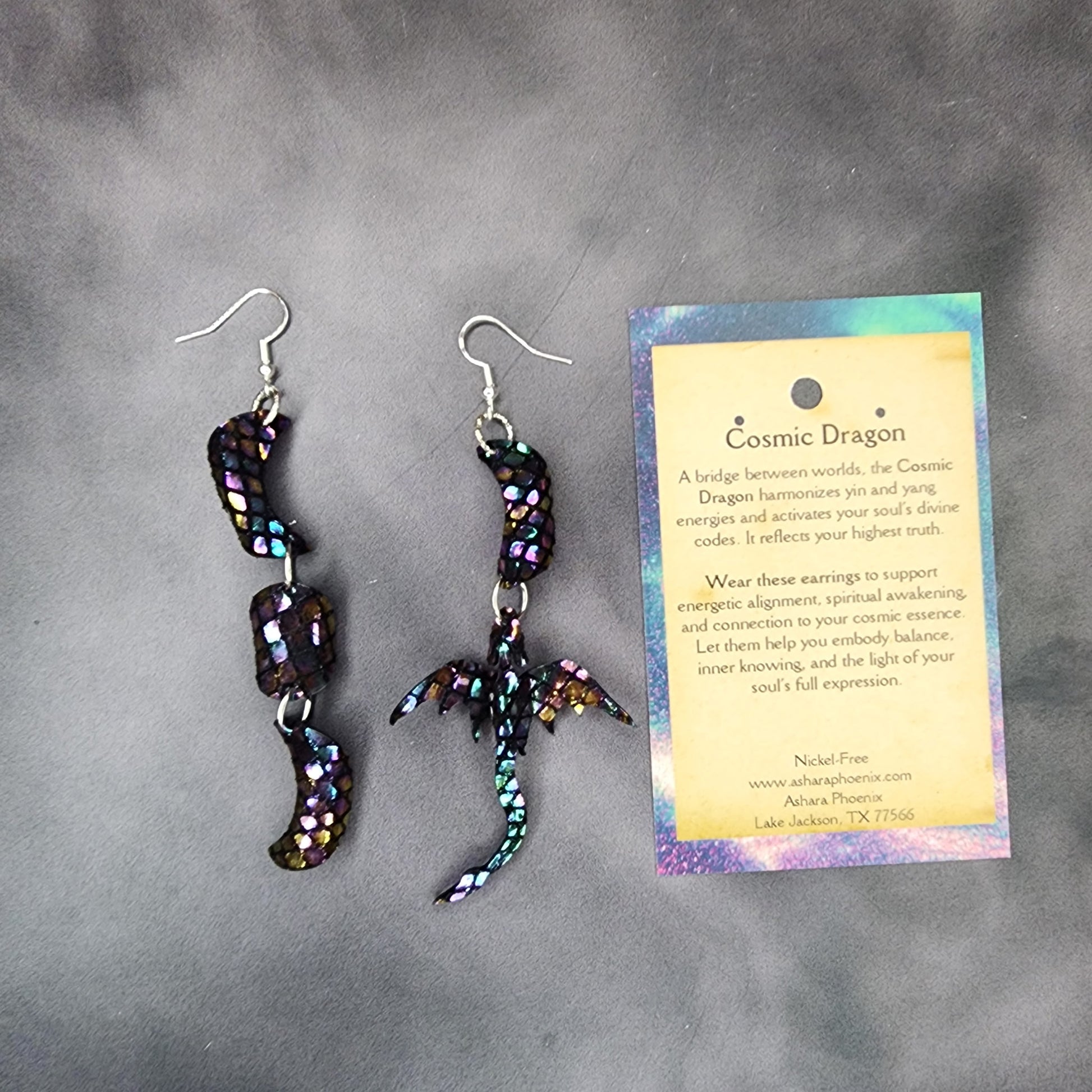 A prism of light and shadow, the Stained Glass Triple Moon and Dragon Earrings embody the beauty of transformation through contrast. The Triple Moon reflects the ever-shifting rhythm of life, the dance between clarity and mystery, while the Dragon carries the energy of divine protection and radiant truth.